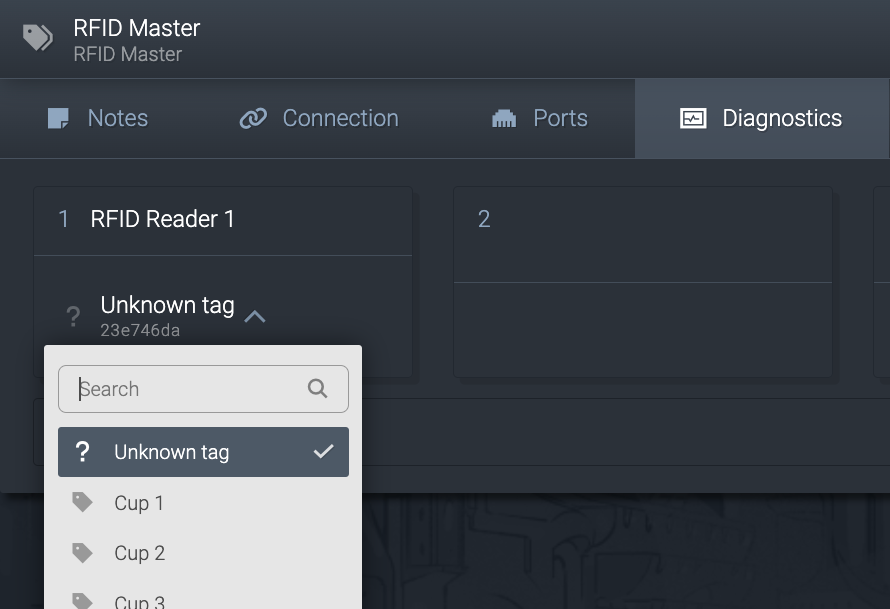 - In Connect → Select RFID Master → Diagnostics, here you will see an 'Unknown Tag' on the reader it's currently on.