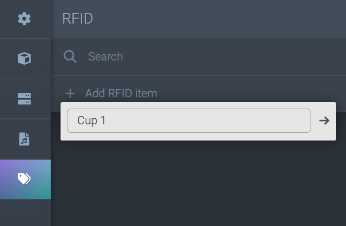 - Use the text field to type the name of your RFID item (e.g. if you had a prop made of cups and saucers, you would call is something like 'Red Cup', etc).