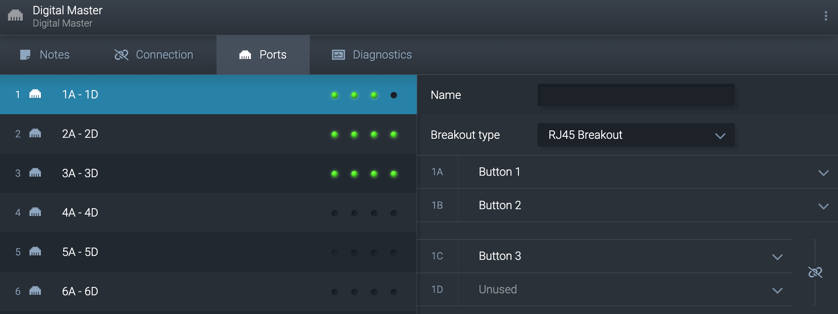 - Go to Connect → Select a Digital Master → Ports (ethernet icon)