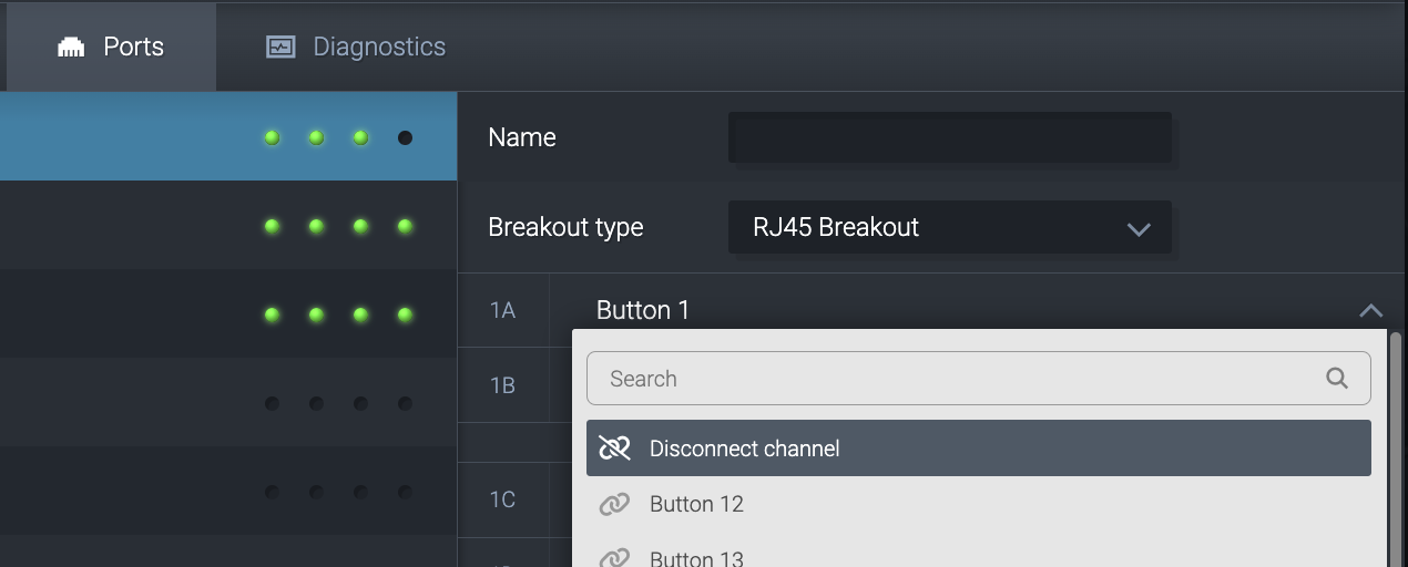 - Click on the dropdown on each channel to see all available Digital Input/ Digital Output channels that can be patched to that port.