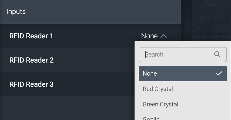 Each RFID reader has a drop down, from which you can choose from any RFID item in the show.