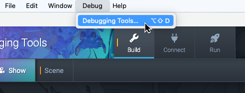 To find this, go to the Debug tab, and click Debugging Tools.